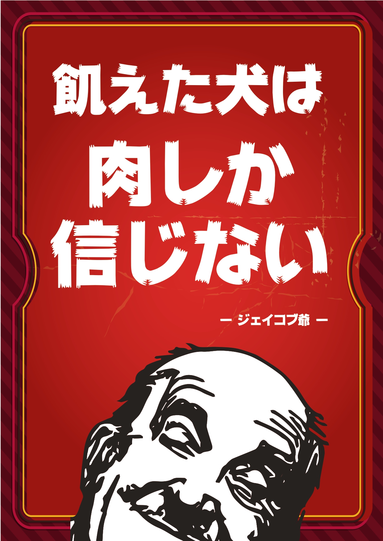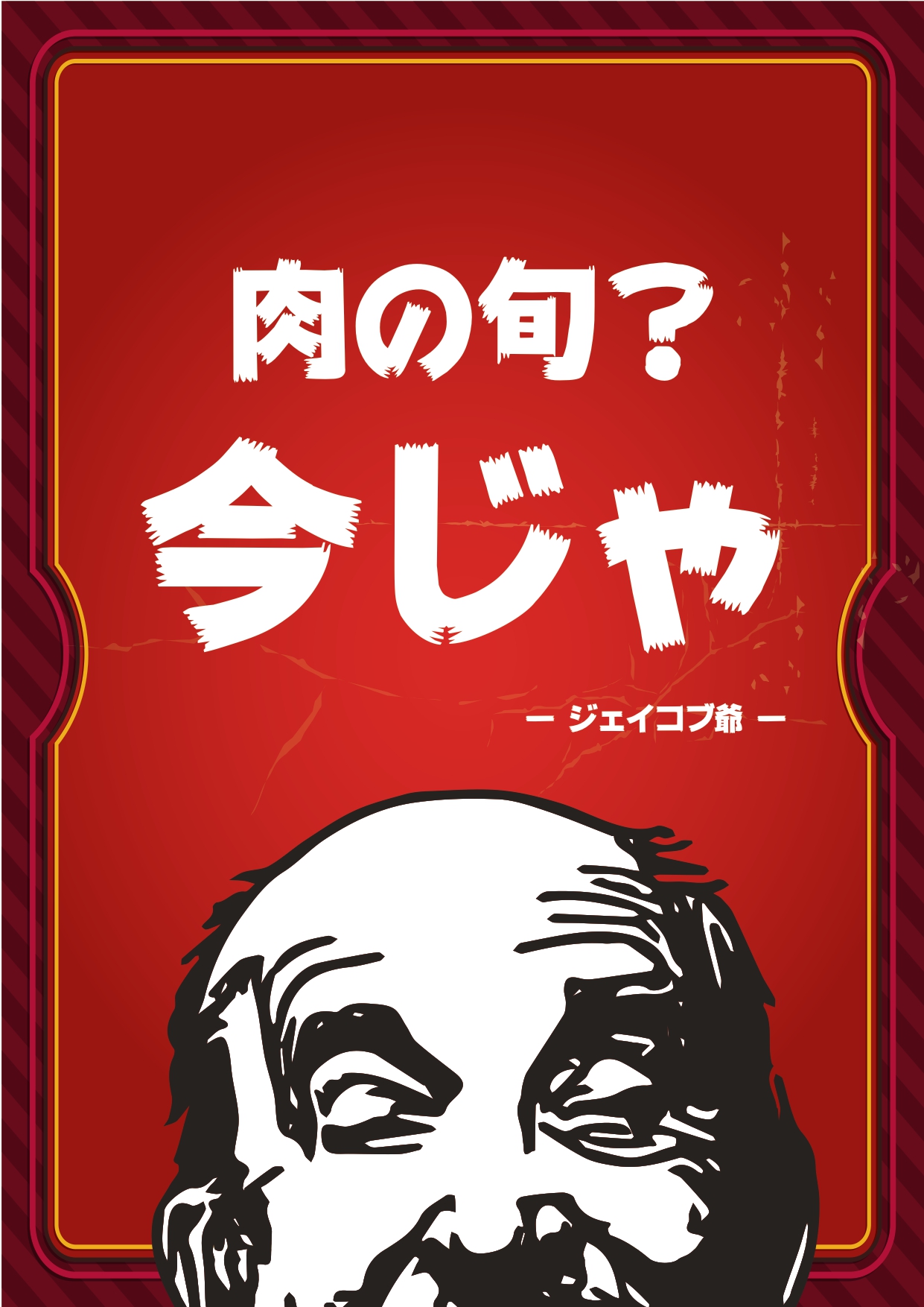 ジェイコブという単語に意味を持たせるため、架空のステーキマエストロ「ジェイコブ爺さん」というキャラを生み出し、店舗のロゴにも採用。ジェイコブ爺さんにキャラづくりのためのツールが必要となった。