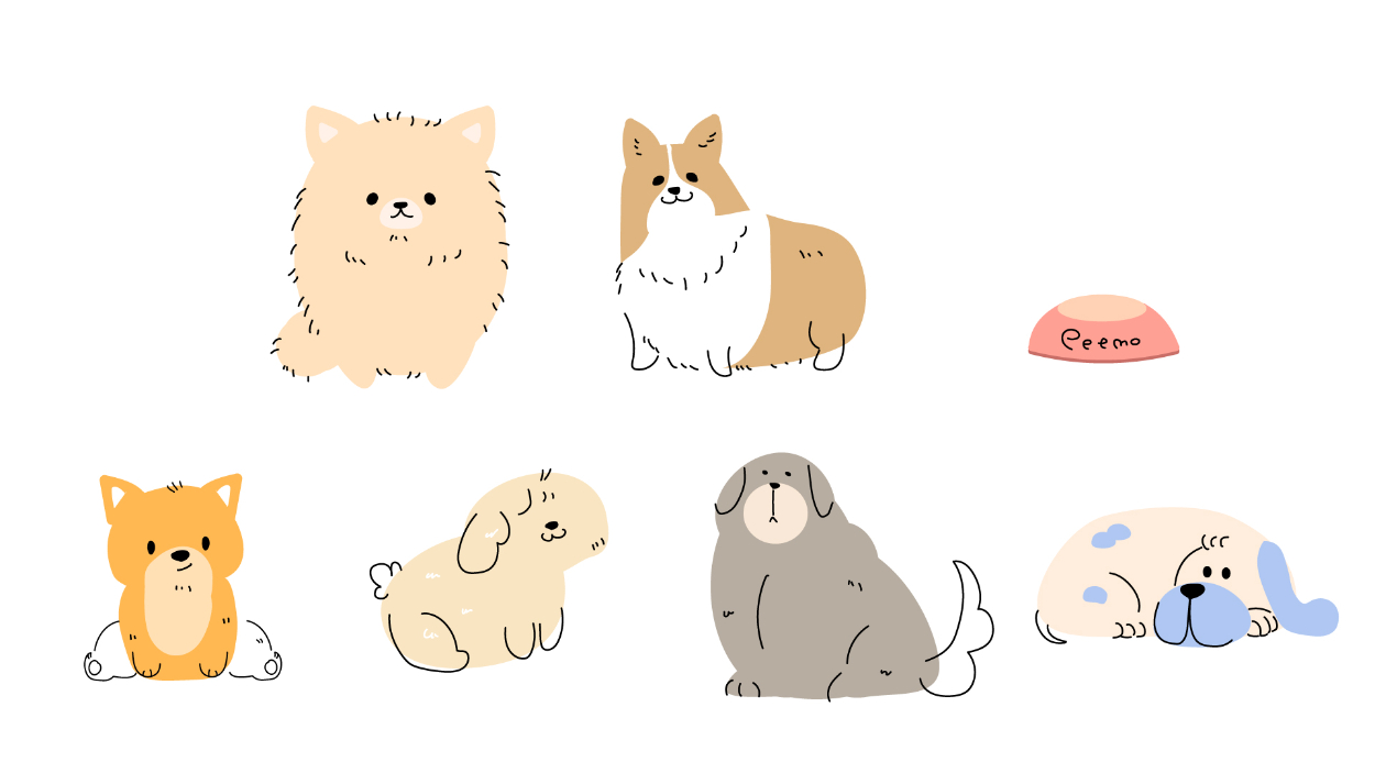 Illustratorにてワンちゃんなどのイラストの製作も行いました。
