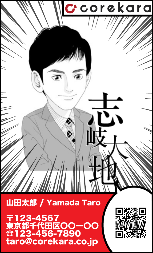 ”唯一無二のぶっ飛んだ名刺にしてほしい”という要望から、漫画風のポップなデザインにしました。