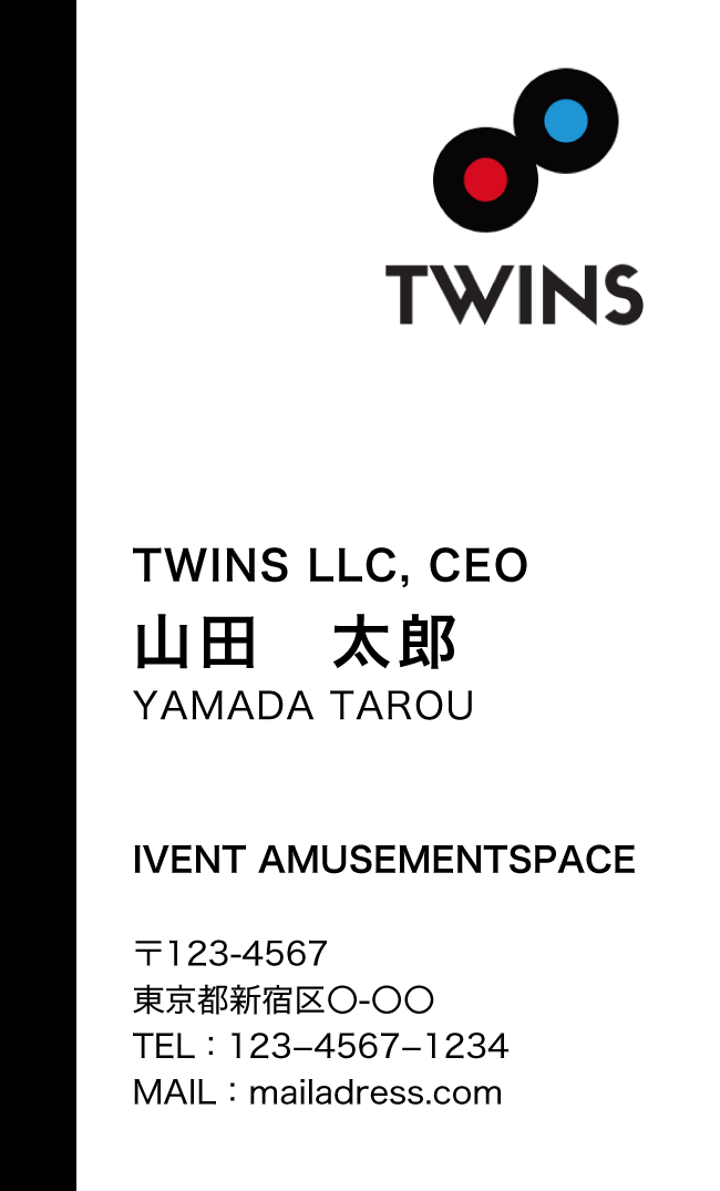 双子の兄弟で経営されている会社のロゴ・名刺を制作。2つの円で双子を連想させるようなロゴにし、全体的にモノクロでスタイリッシュなデザインにしました。