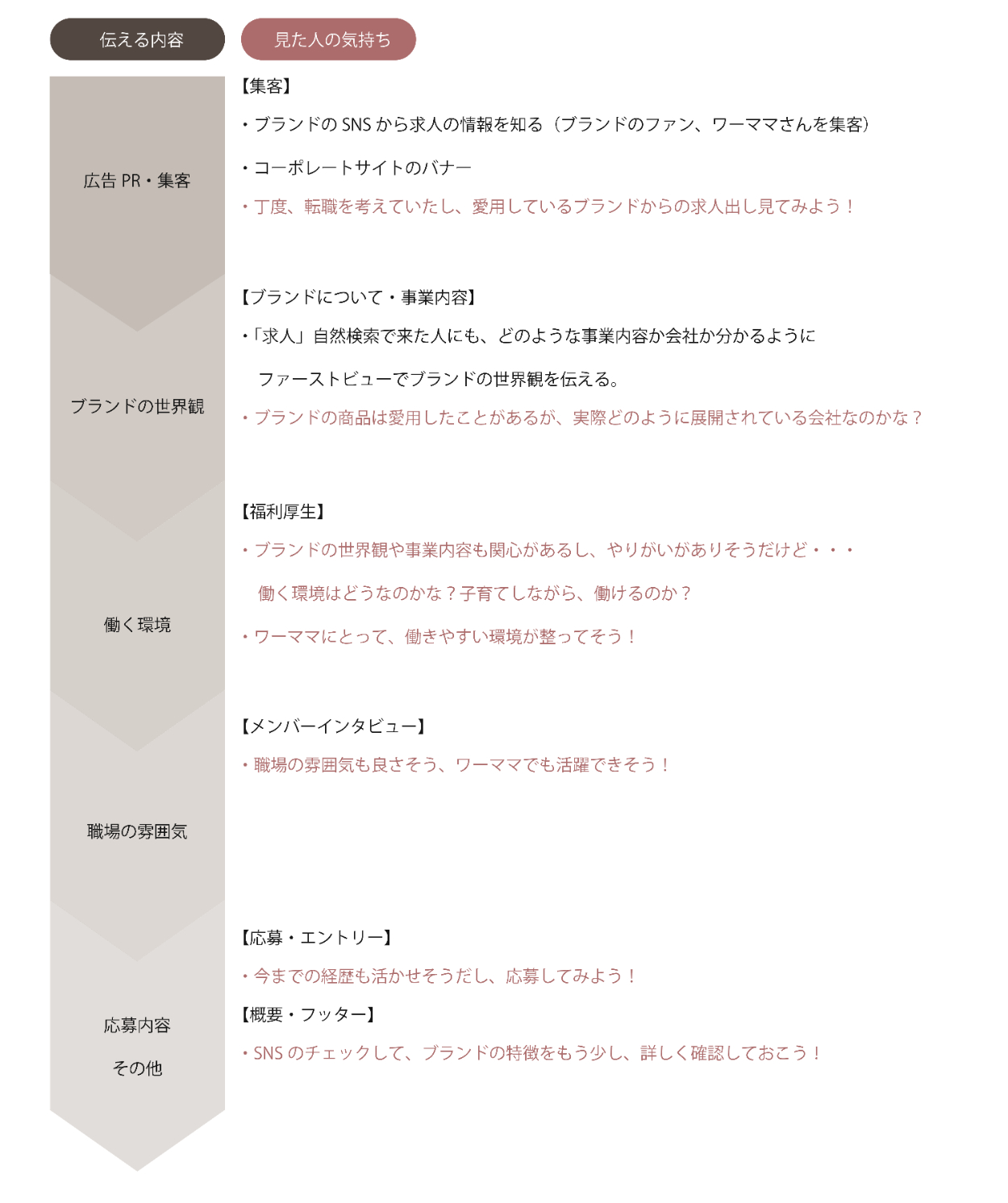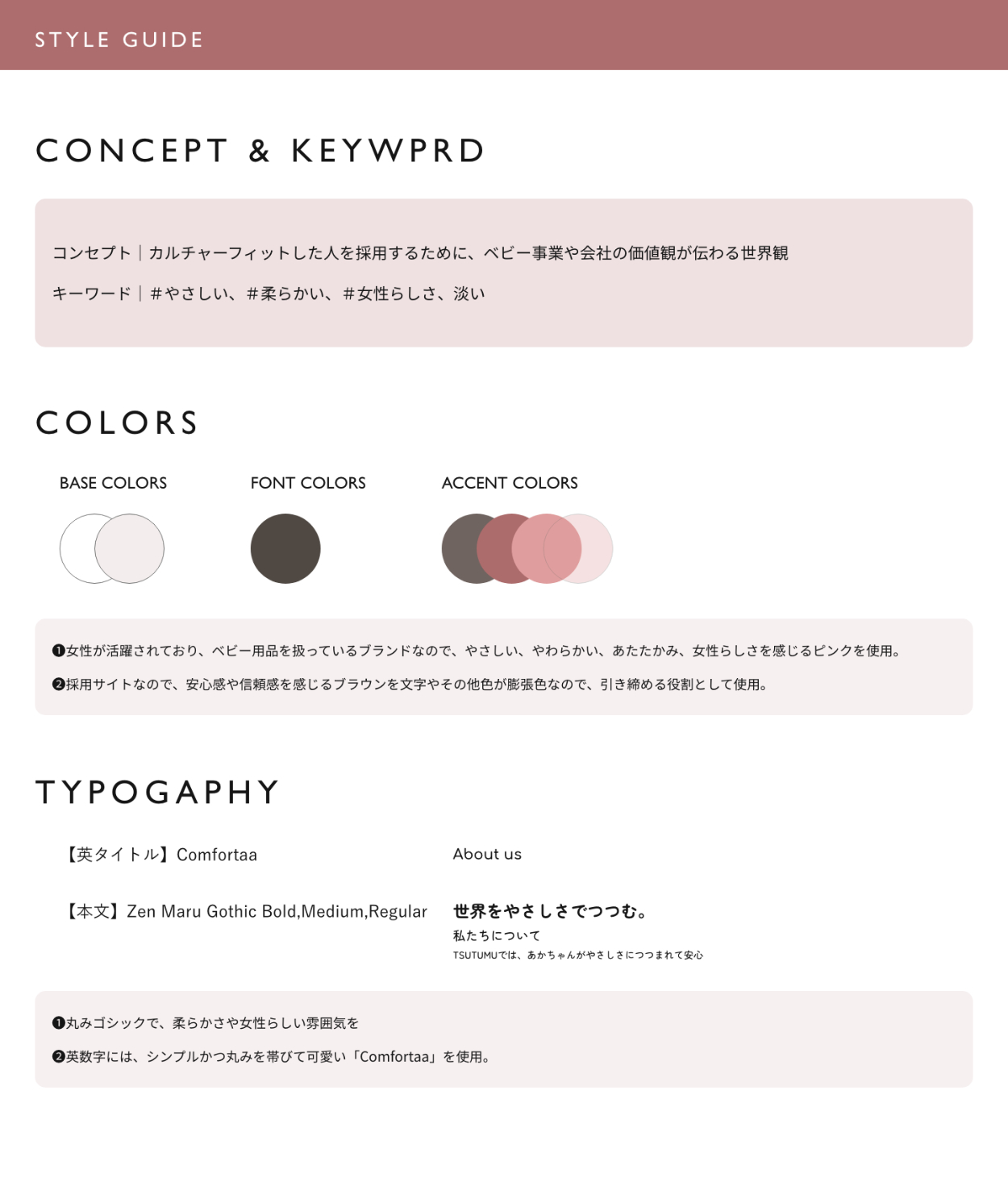 ブランドの世界観を保ちつつ、採用サイトの真面目さを表現するために、全体的にシンプルにまとめ、丸みを帯びたデザインにすることで、柔らかさやあたたかさを補填。