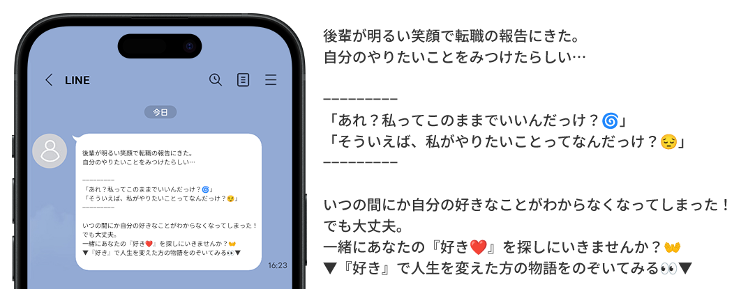 - 自分のやりたいことが分からずモヤモヤしている方をターゲットとしました。
