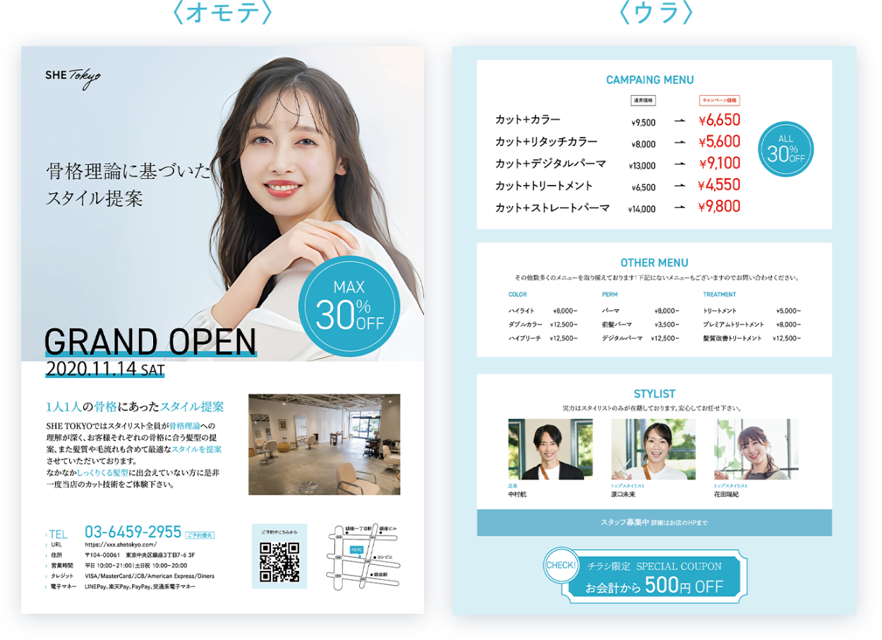 - フライヤーの文字の大きさや画像の配置はバナーなどとは異なる