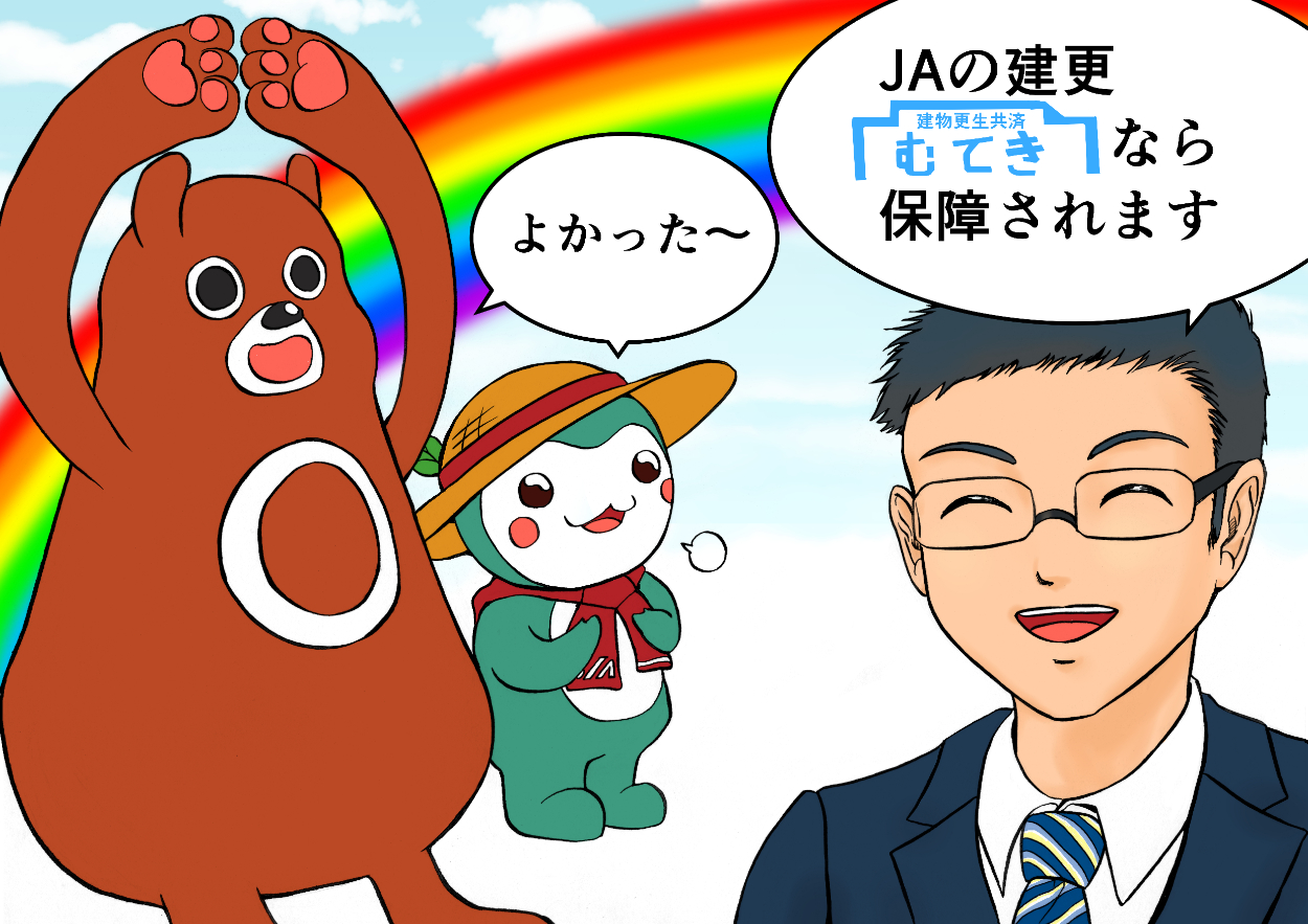 建物更生共済ポスター 赤井 りむ イラストレーター OVERVIEW JA様の建物更生共済を推進するポスターを作成 YEAR 2016 キャラクター『でんえんまる』と『ひとのわグマ』『でんえんまる』『でんえんまる』と『ひとのわぐま』『ひとのわぐま』揚舟と『でんえんまる』雷様仮装『でんえんまる』完成4コマポスター建物、小物、背景、効果も全て作成しました。