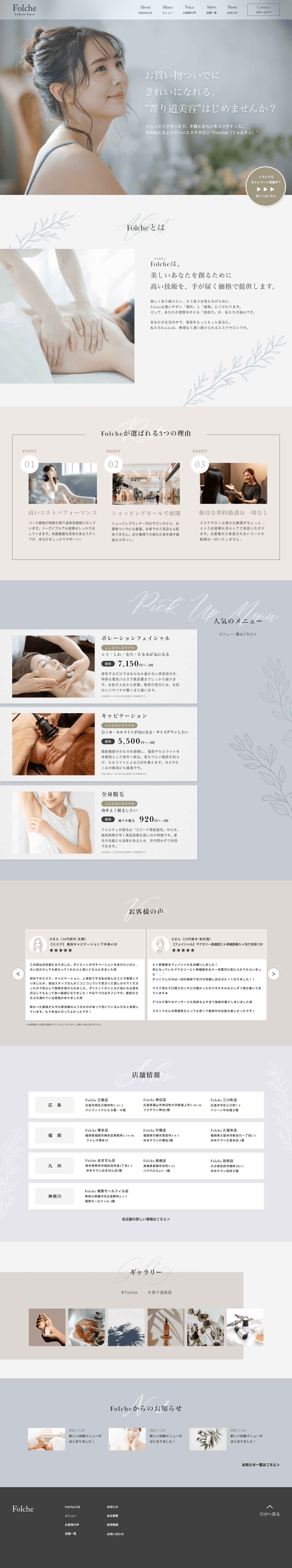 『Folcheさんの強みであり、価値である、”手軽でリーズナブルなのに、効果を実感できる。今の自分にちょうどいいエステサロン”ということが伝わるWEBサイト』