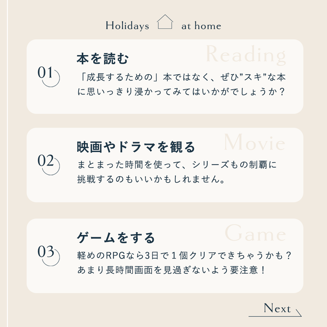 テーマ:「インドア派の休日の過ごし方 12選」