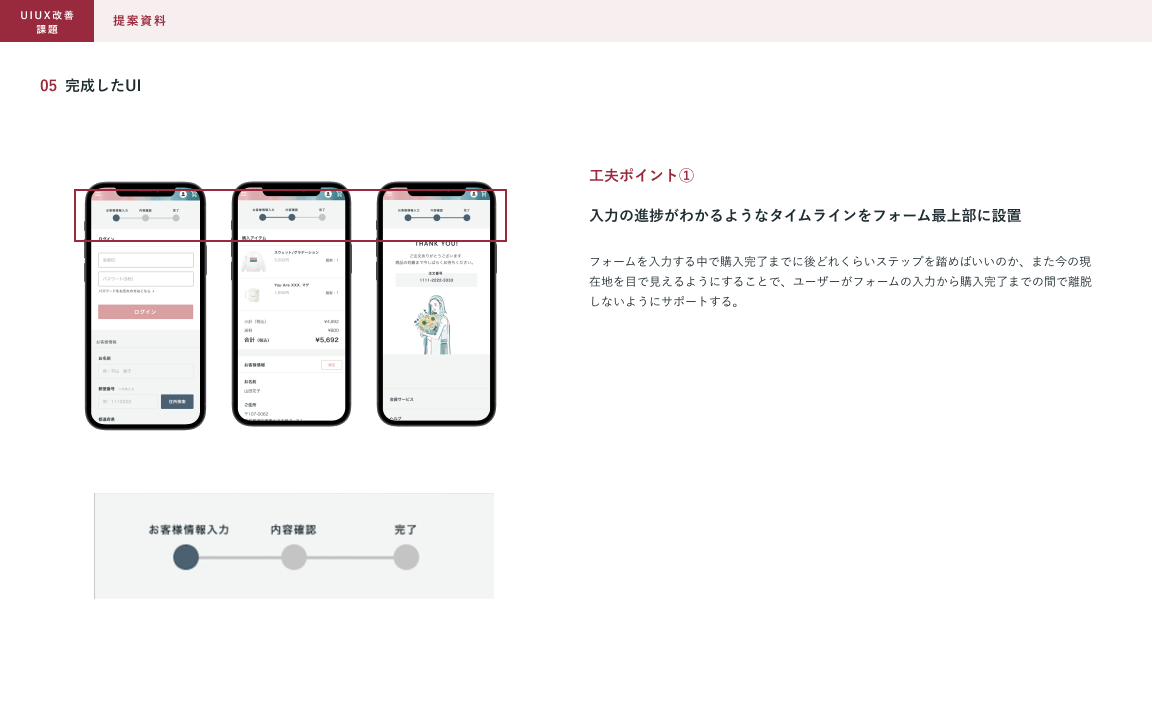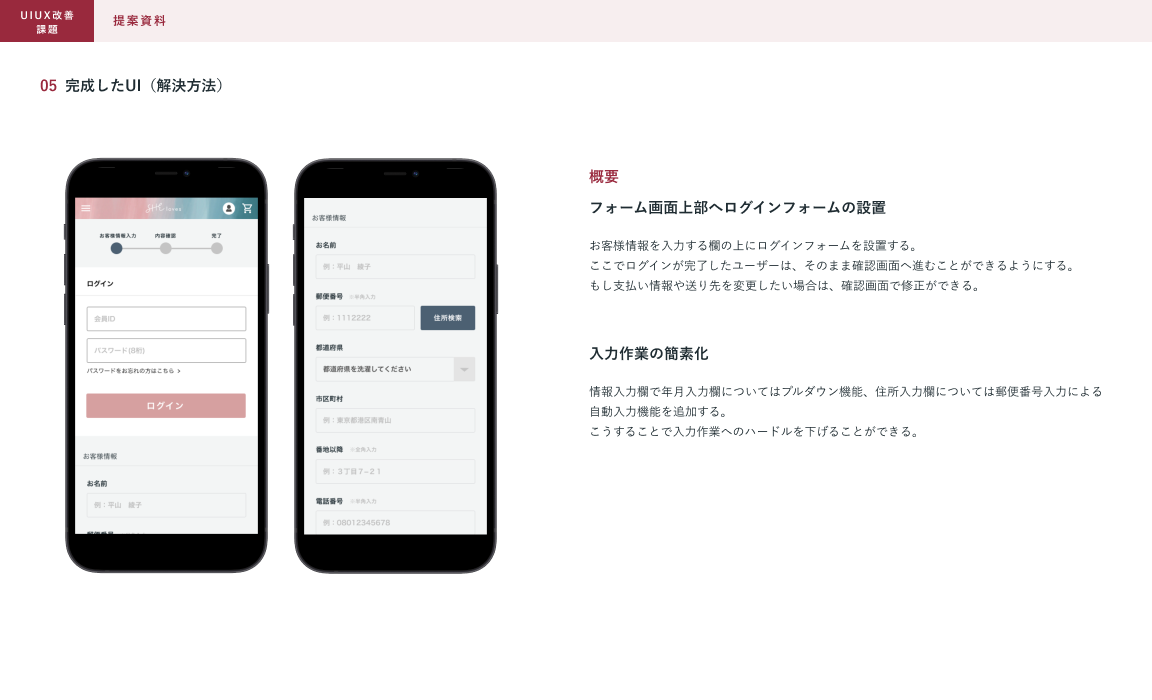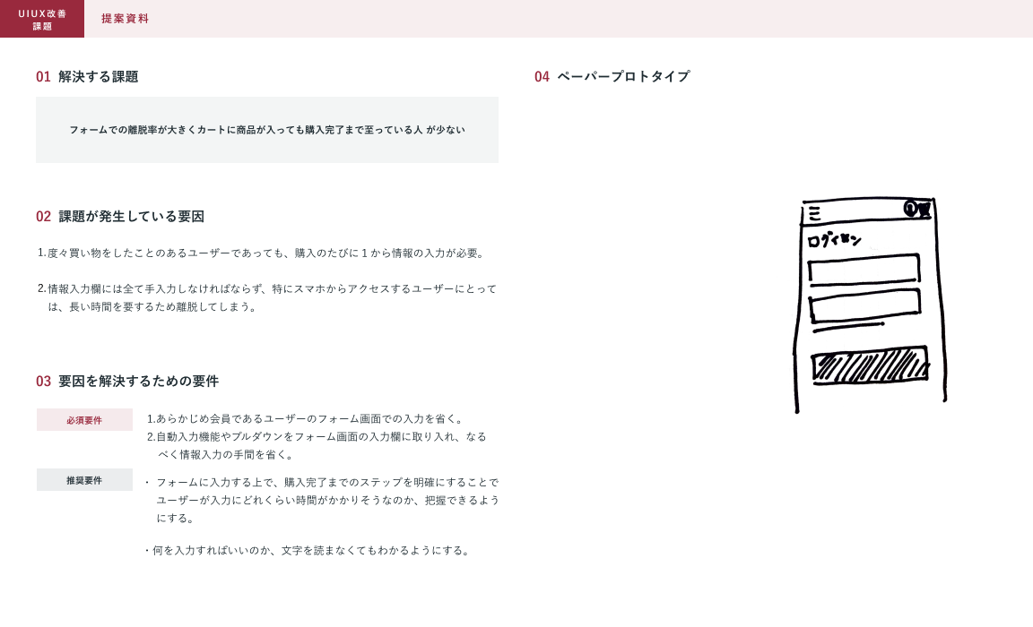 課題②「フォームでの離脱率が大きくカートに商品が入っても購入完了まで至っている人が少ない」に対してのご提案資料
