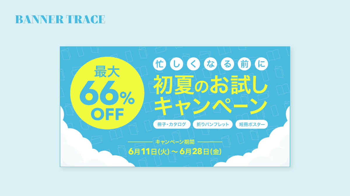 ラクスル株式会社様のキャンペーンバナーをトレースしました。