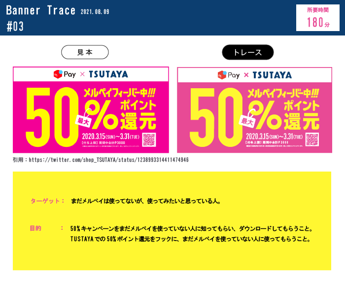 メルペイ×TSUTAYAの50%還元キャンペーンバナーをトレースしました。