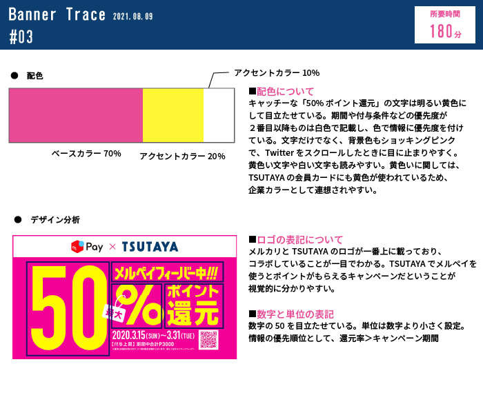 自分がSNSを使っている中で、目に止まったバナー広告をストックし、引き続きバナーのトレースと分析をやっていきたいと思います。