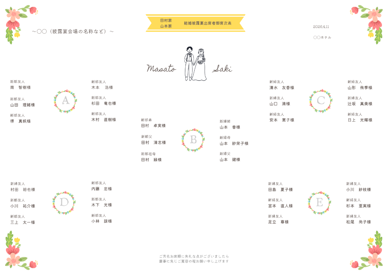 披露宴の席次表をイメージで作成いたしました!(全て架空です。)