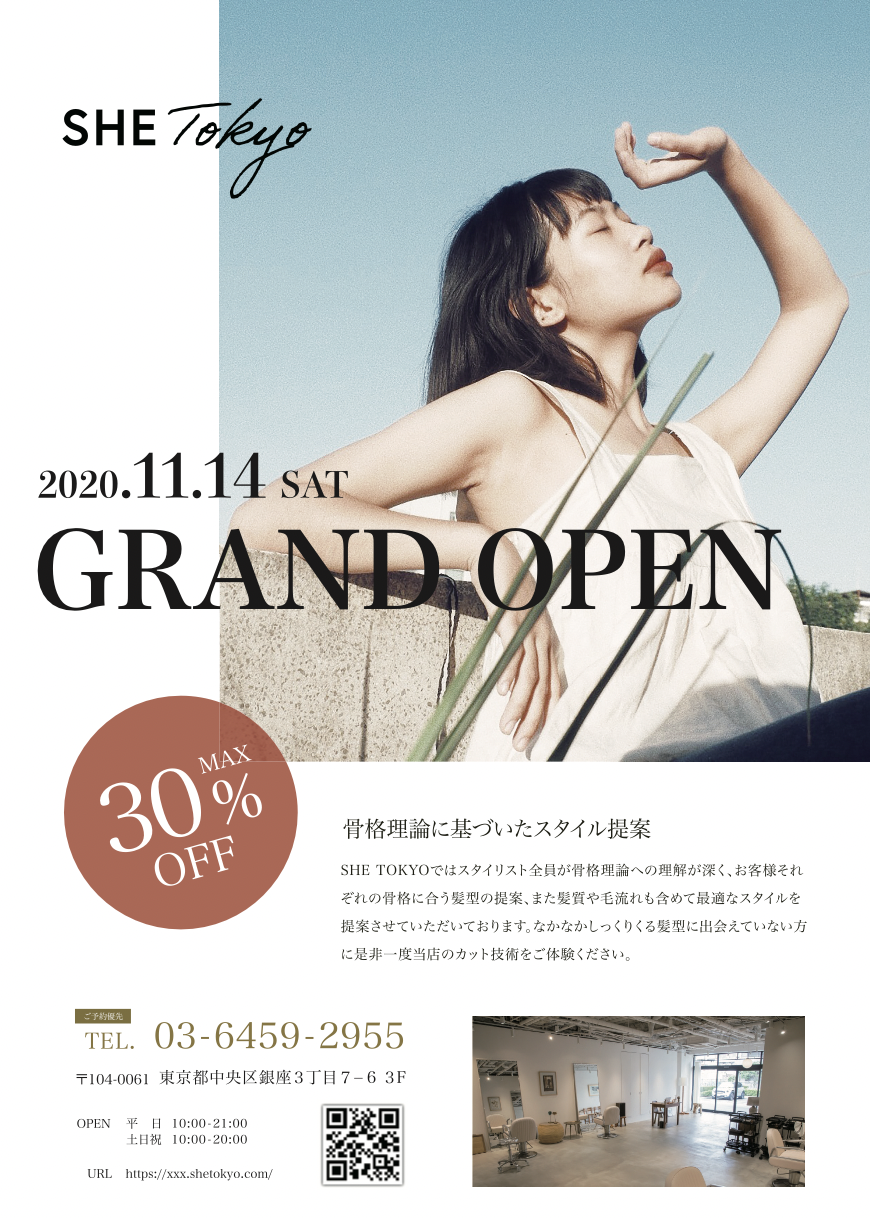 お店にすぐ問い合わせできるよう電話番号をがすぐ目に入るようにし、URLだけでなくQRコードも配置しました。
