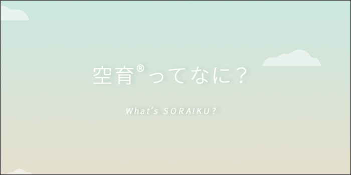 キービジュアルの背景はグラデーションを用いて作成し、タイトルの「空育ってなに?」 の陰影は、ドロップシャドウを用いて作成しました。
