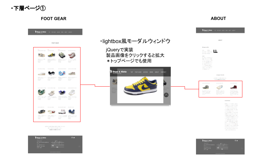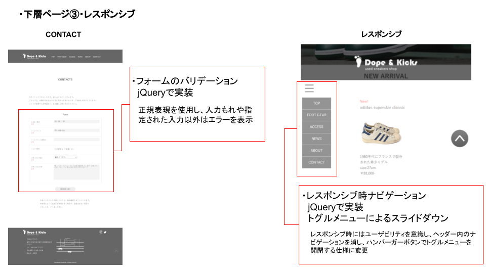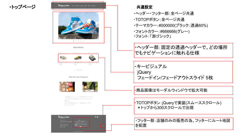 東京都の職業訓練校の修了制作。架空企業のwebサイトを、企画からデザイン・コーディングまで全て個人で担当し、2週間で制作する課題。(全6ページ)「川崎にあるユーズドスニーカーショップ」という設定で制作。