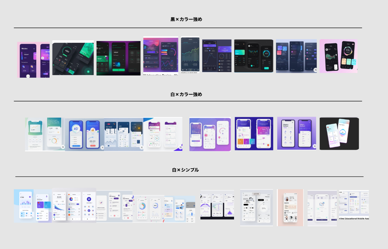 イメージ画像を集めてFigmaにぺたぺたと貼り付け、チームメンバーに共有して、イメージしている方向性がずれていないか確認しながら進めました。