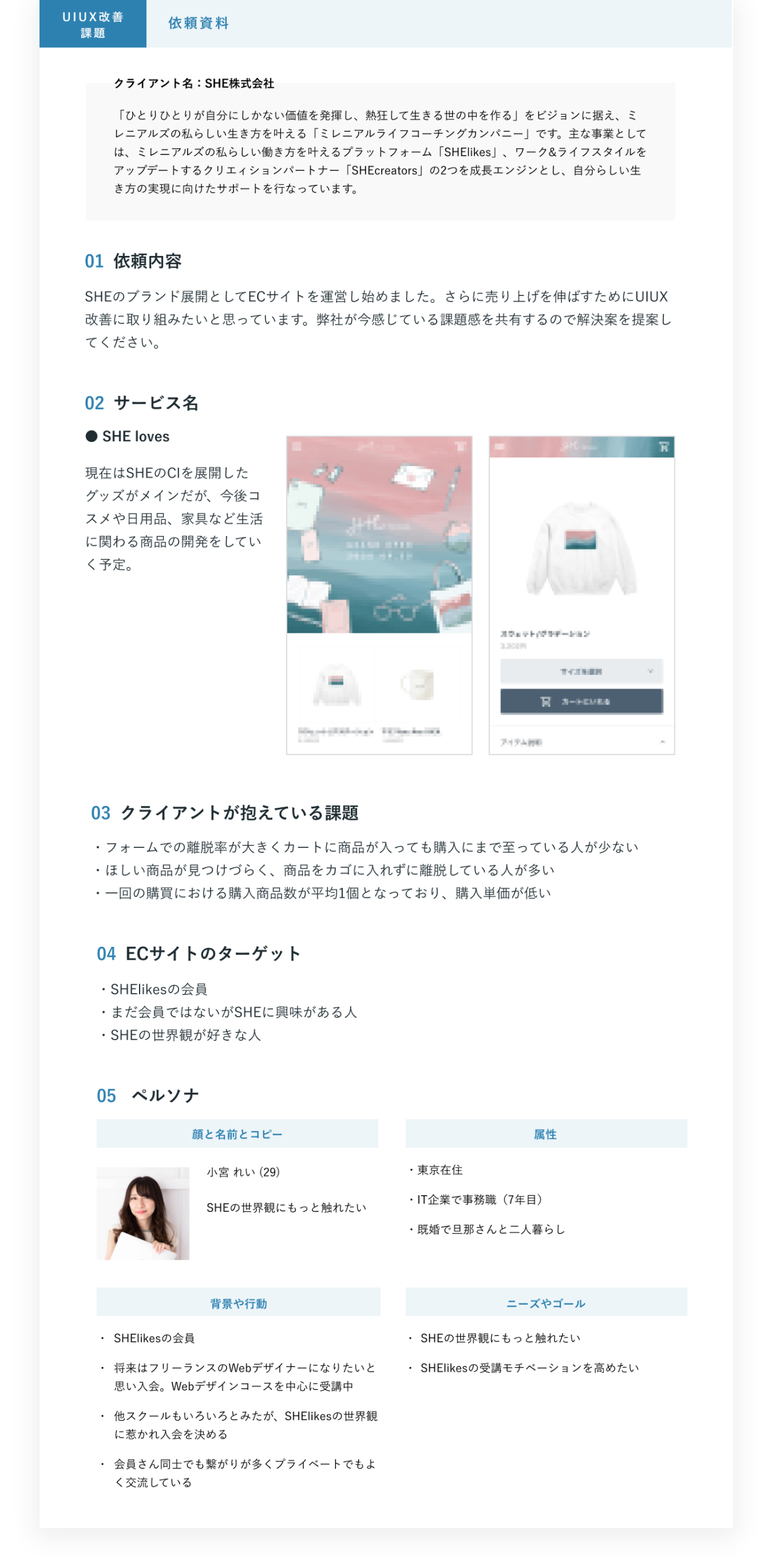 SHElikes MULTI CREATOR PROJECTにて、UI/UX改善提案課題に取り組みました。ペーパープロトタイプ、Figmaを使用したデザインカンプ、改善提案資料を作成しました。