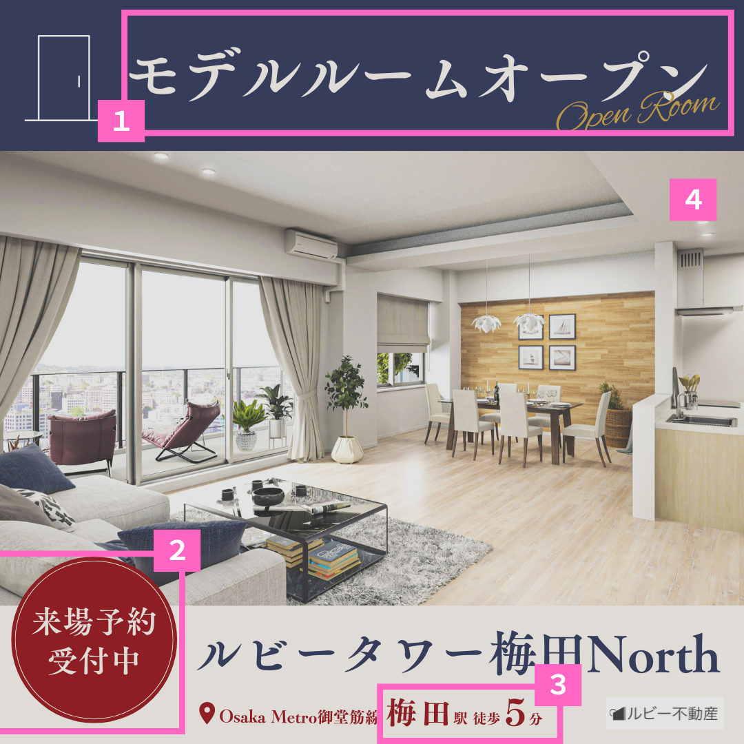 ③ユーザーに一目で重要なポイントを気付かせるために、キーワード:「梅田駅」「徒歩5分」を強調。