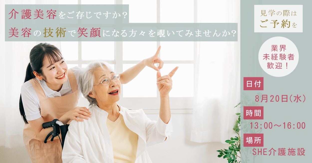- 近年介護美容教室が少しずつ広まる中で、もっとたくさんの人に知ってもらえると介護業界で働く人が少しでも増えるのではと思い今回架空の施設で行う美容教室のバナーを制作しました。