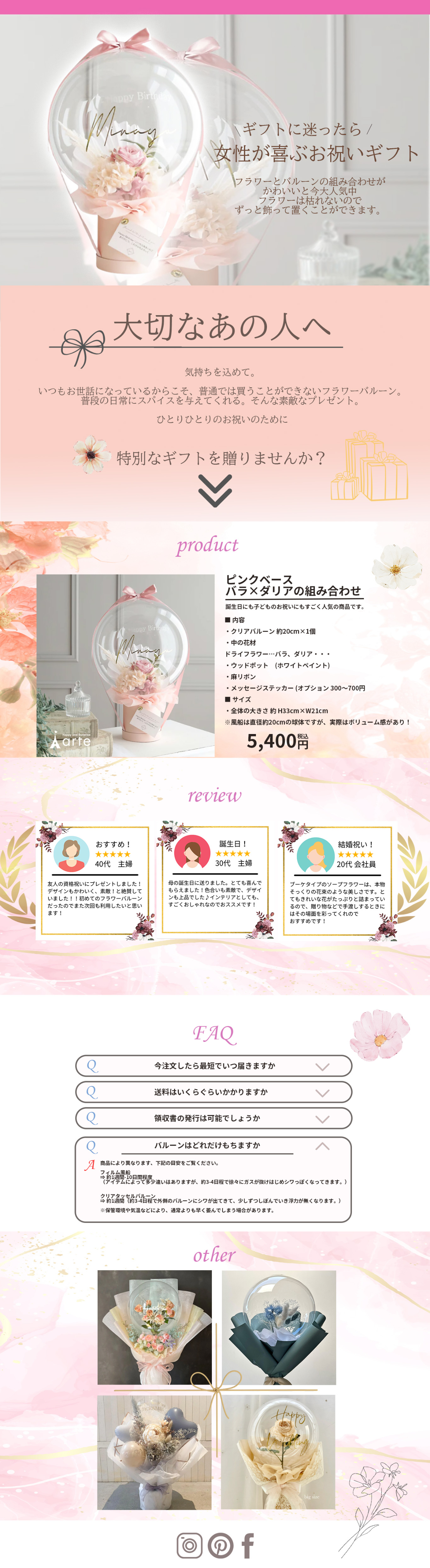 ◉友人がフラワーバルーンを開業認めLPを作成し提案中