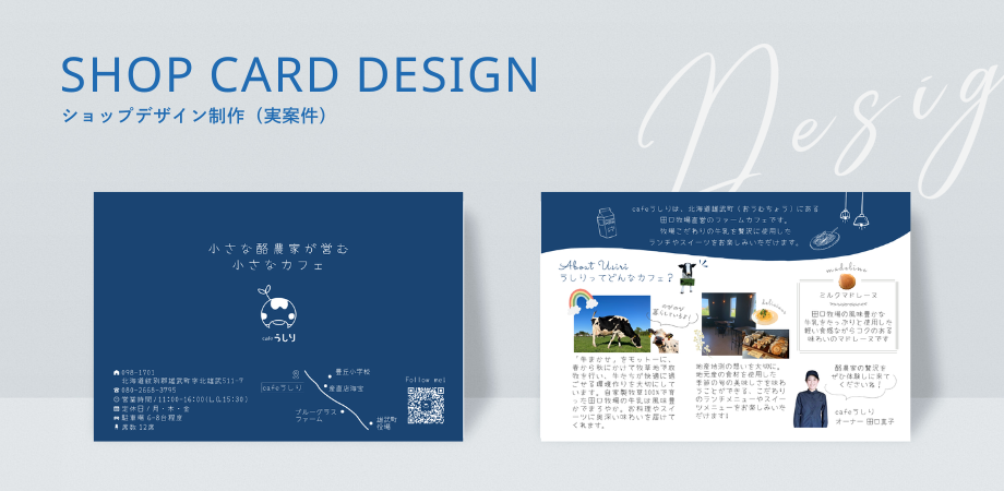 ・北海道雄武町の牧場直営カフェ「うしり」様のショップカード制作。