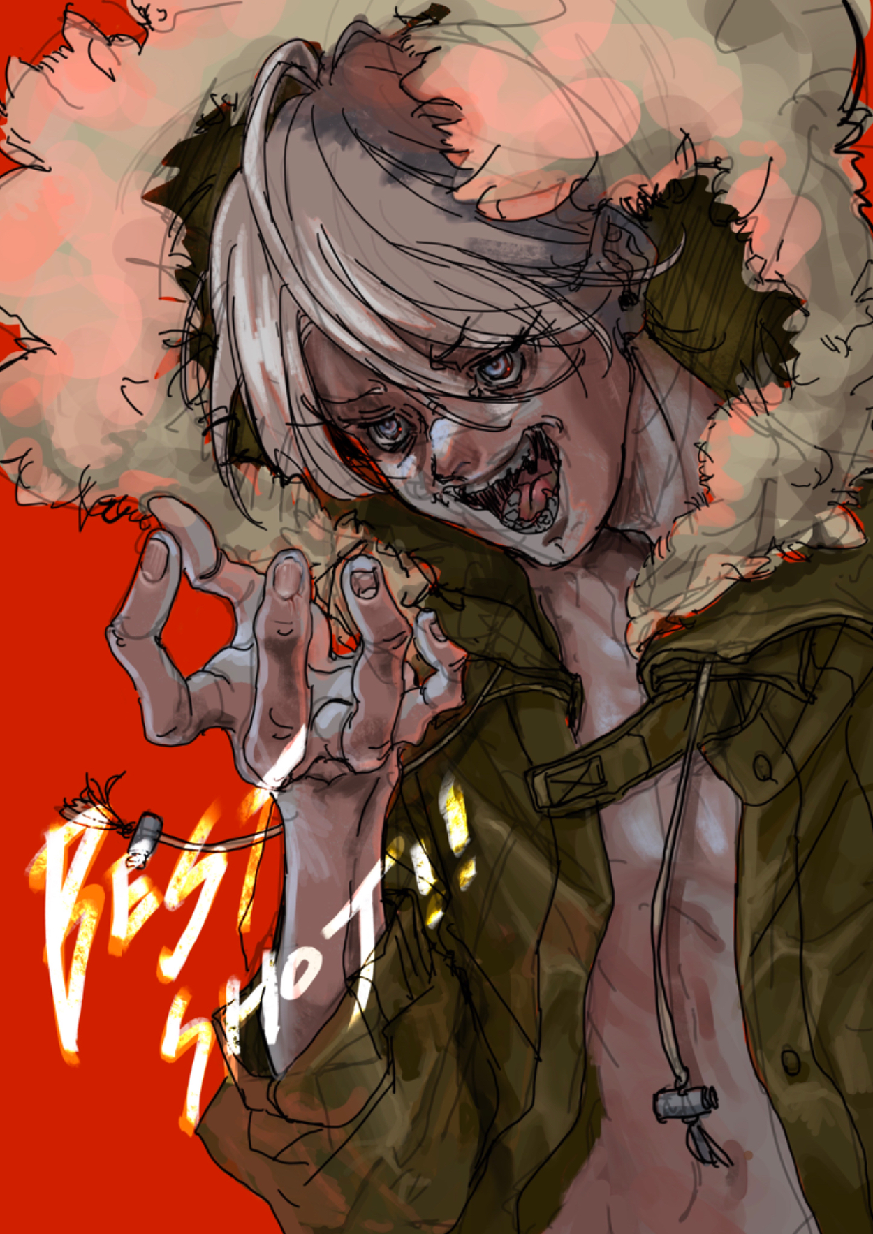 勢いと迫力に重点を置いて制作しました。多少の荒削りな雰囲気があった方が見ていて面白味があるのではないかという挑戦の一作でもあります。描き込む部分とそうでない部分をはっきり分けることで視線誘導になるように調整しました。