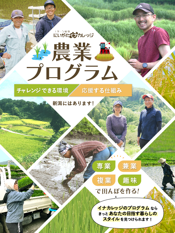 - 明るく楽しそうなイメージ、安心して学べるイメージを出すために、先輩農家さんと一緒に写っている写真を多く選びました。
