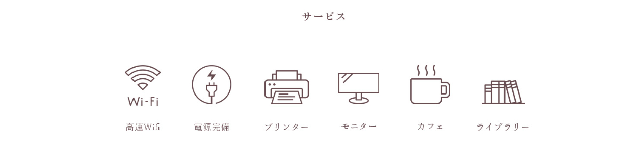 またコワーキングスペースの施設サービスとして、カフェやWi-Fiなどの設備があることをイラストを用いて提示しました。