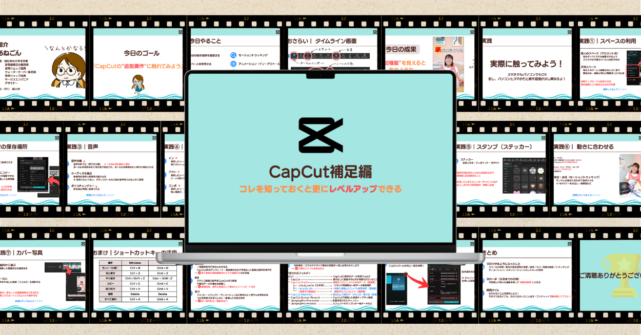 CapCutの基礎講座を受け、更に理解を深めたい人向けの補足講座のスライド。