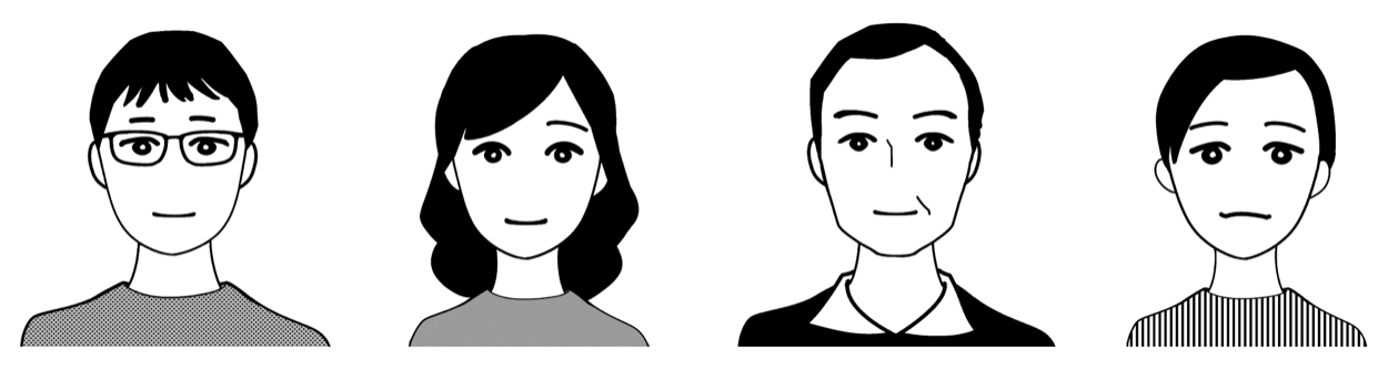 個人特定に繋がるためあまり似せすぎないようにという指定。シンプルなデフォルメに留め、面識がある人ならわかるという程度に仕上げました。