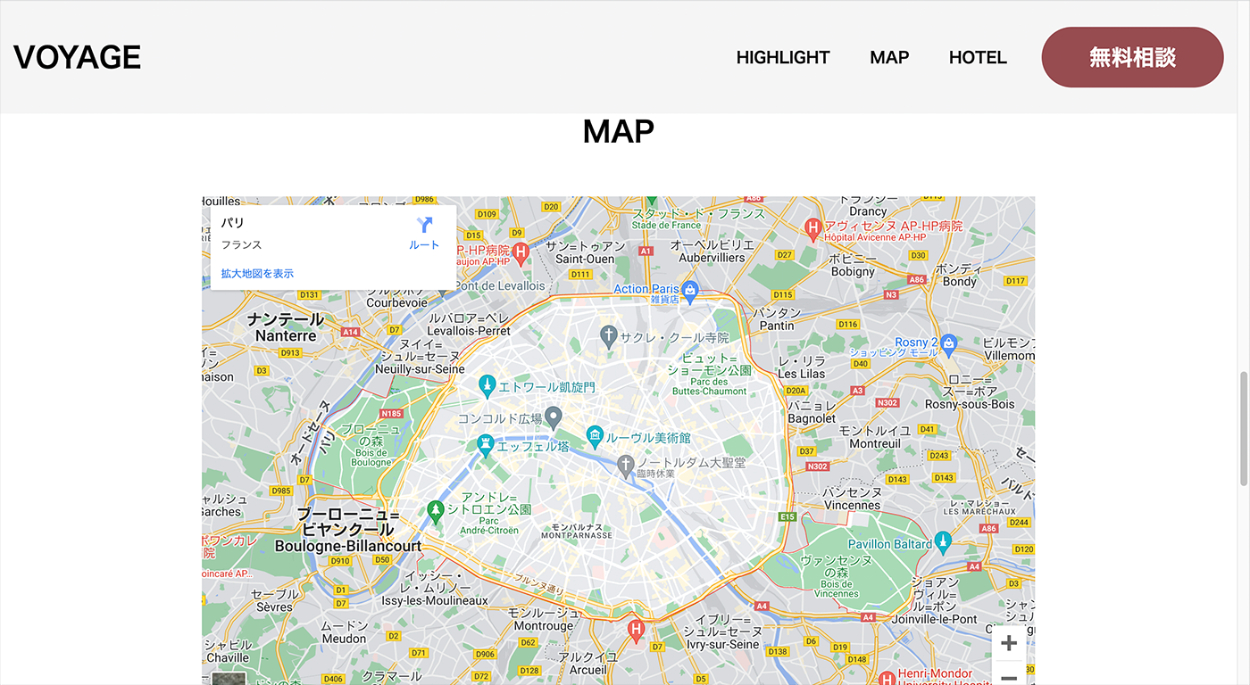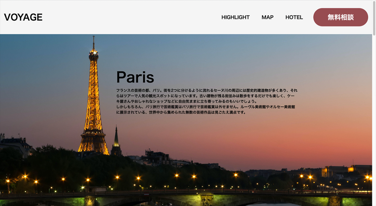 パリの魅力を伝えてツアーやホテルなどの紹介や無料相談ができるWebサイト