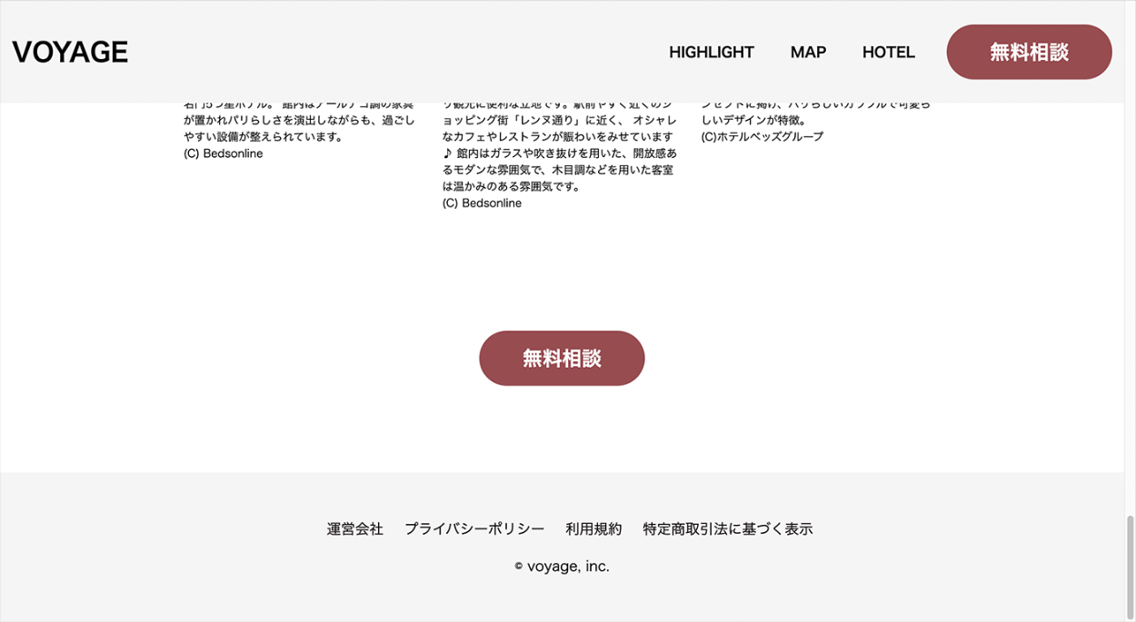 ・無料相談のところは目立つように赤にして、ホバーアクションをつけてカーソルをもっていくと大きくなるようにしました。