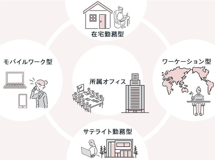 【自主制作】テレワークの種類 スライド saya. フリーランス副業デザイナー OVERVIEW コンペ提出用に制作 【工夫したポイント】・指定されたトーンに沿って、イラストのカラーを調整しました・女性らしく柔らかいデザインにするため、図形は円で統一しました