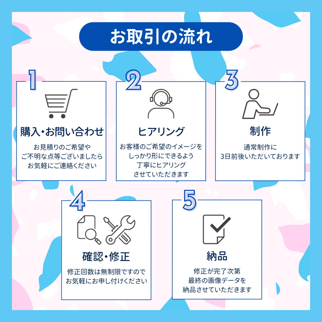 ココナラの出品ページ用のお取引の流れ・サムネイル画像を制作いたしました。