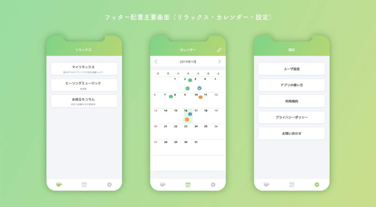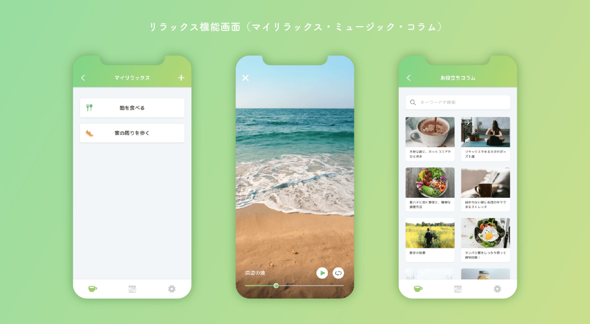 いつでもアプリを開きたくなるような3つのリラックス機能をつけました。