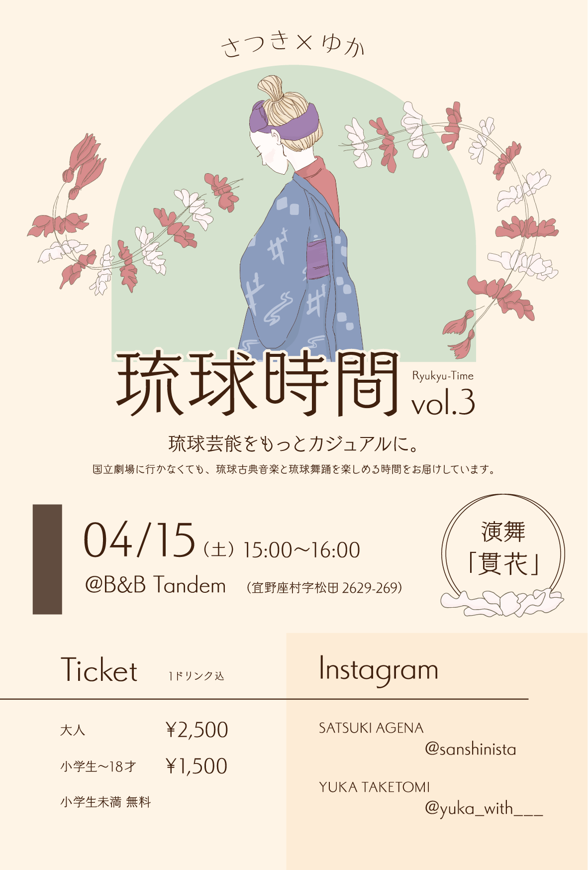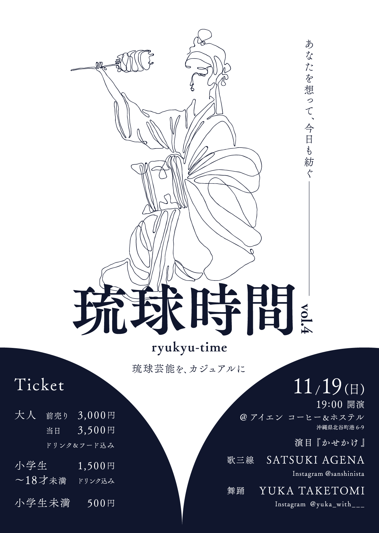三線奏者と琉球舞踊家のユニット『琉球時間(Ryukyu Time)』のイベントフライヤーデザイン。