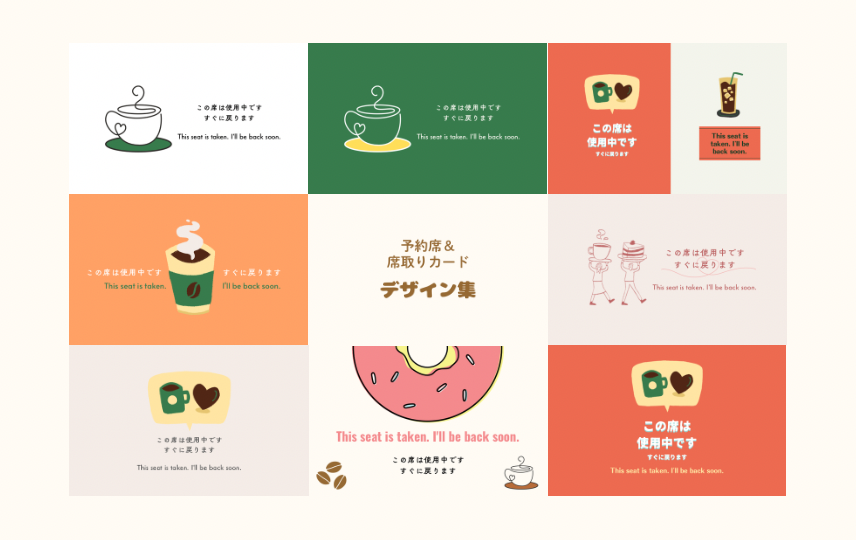・カフェの席取りカード(テーブルリザーブドカード)をデザインしました。こちらのデザインの1つは実際に商品化していただきました!