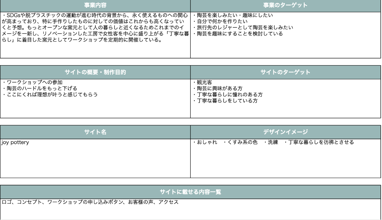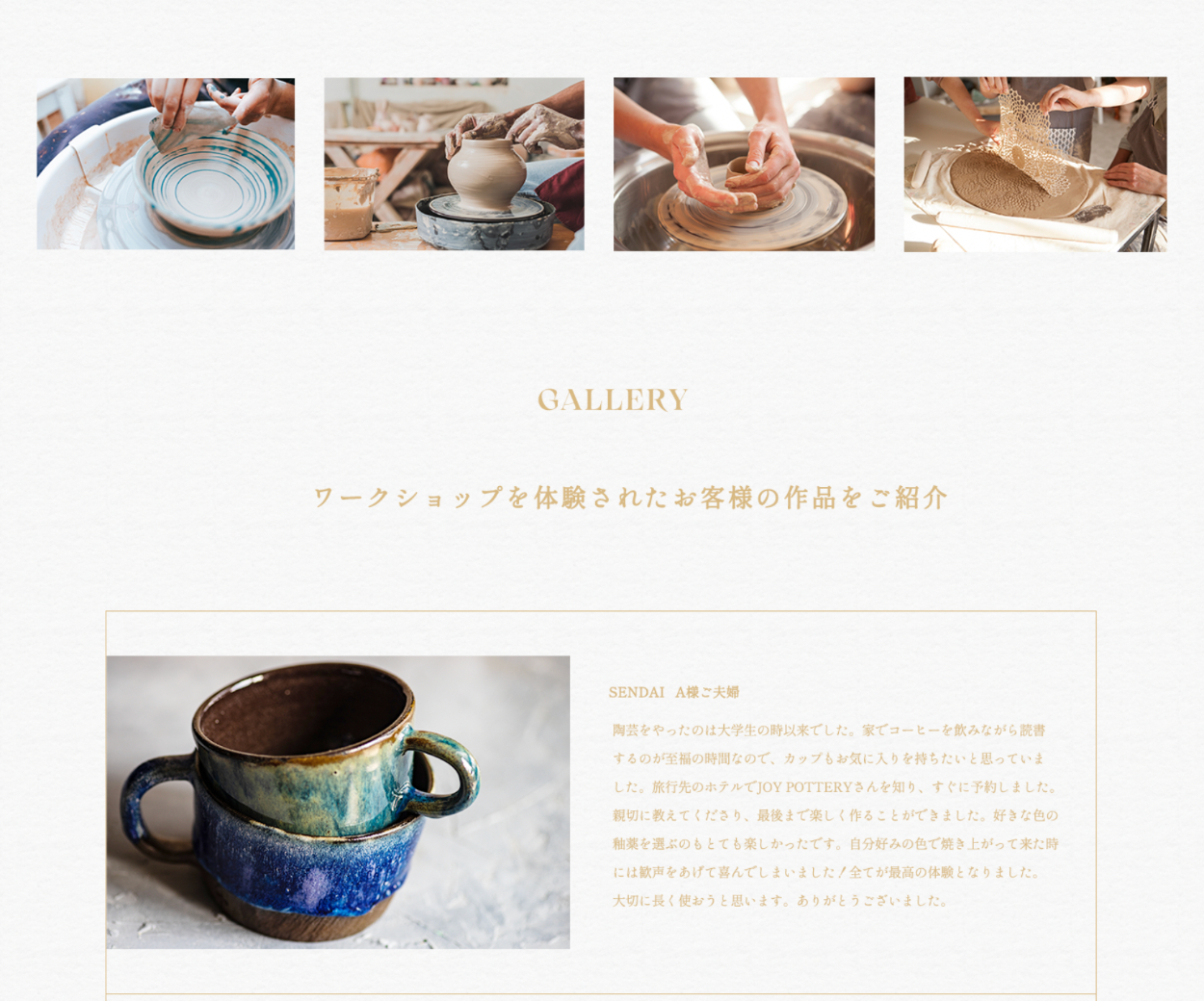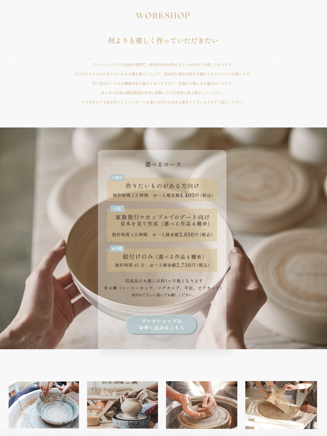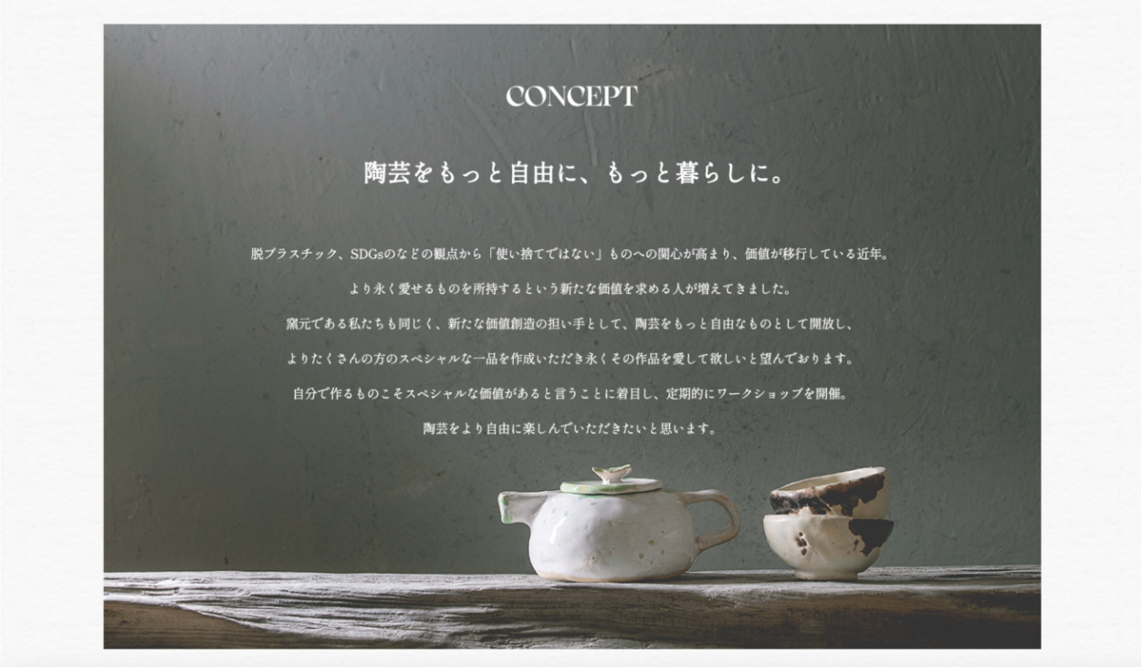 ・丁寧な暮らしを実現する窯元として生まれ変わったため、集客を促すために定期的なワークショップを開催していることをLPで周知させたい。