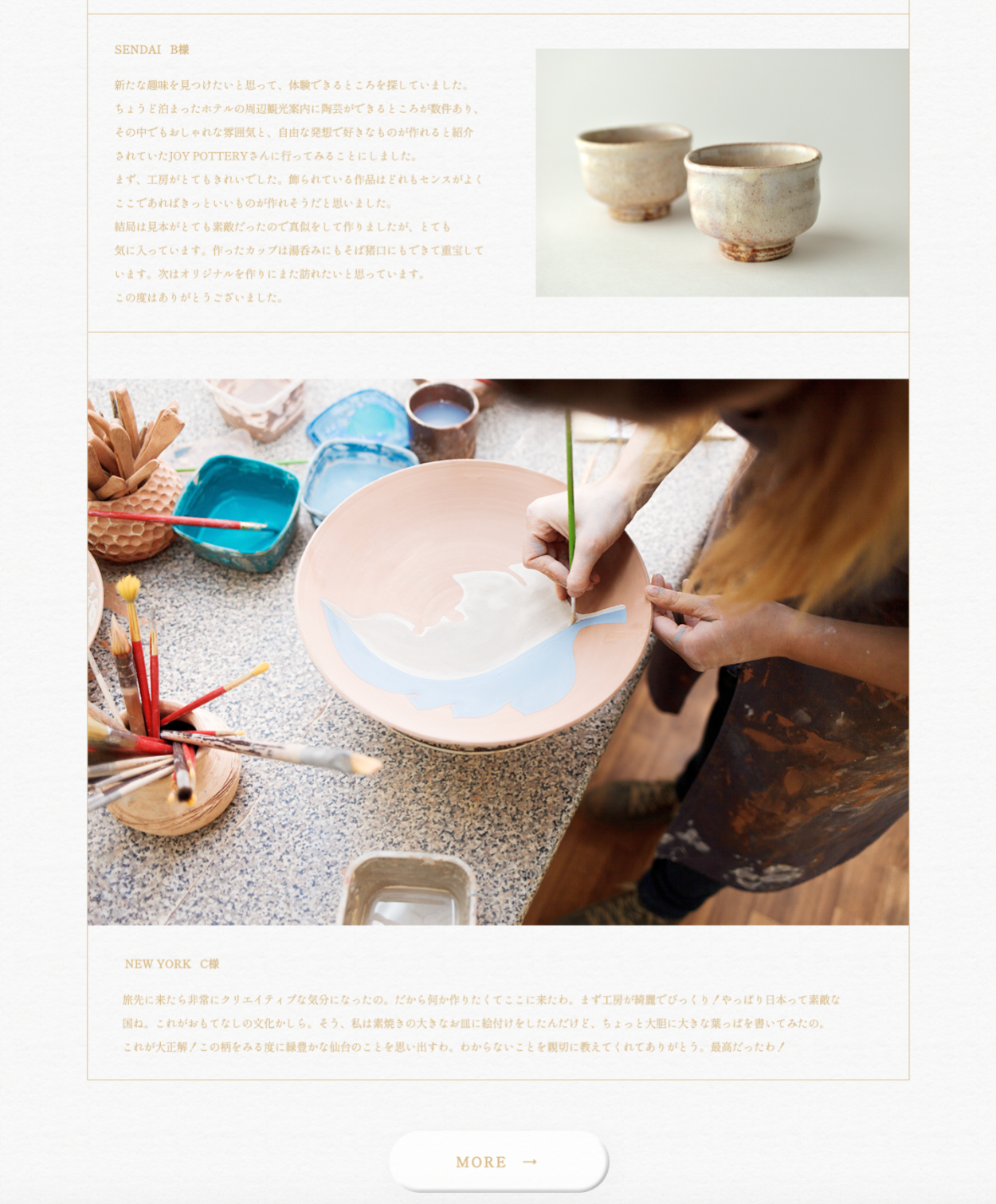 ・予約をしてもらうこちらの部分は、「何よりも楽しく作っていただきたい」と窯元の意向を示し、安心感を与える工夫をしています。