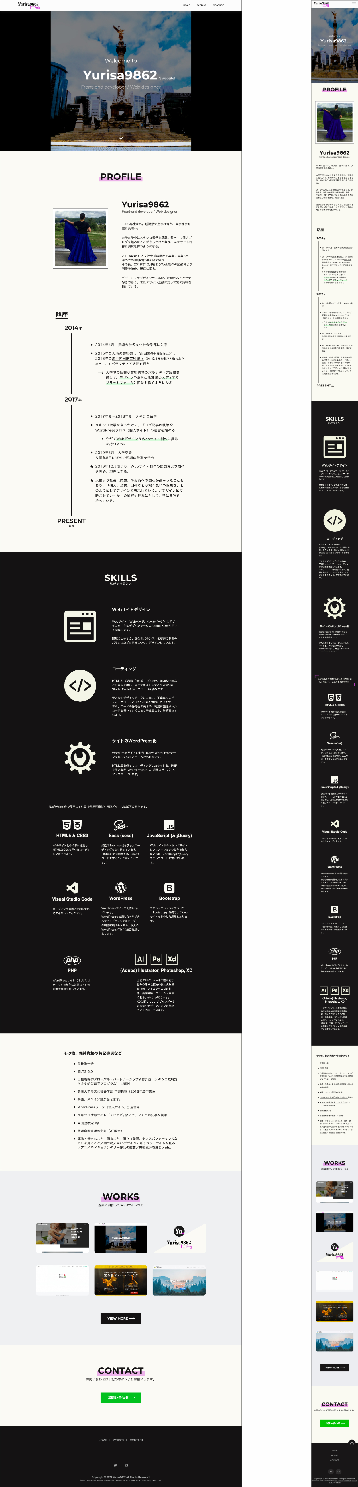 私(Yurisa9862)のポートフォリオサイトを、以前に作ったポートフォリオサイトのデザインをもとに、新たに作成。