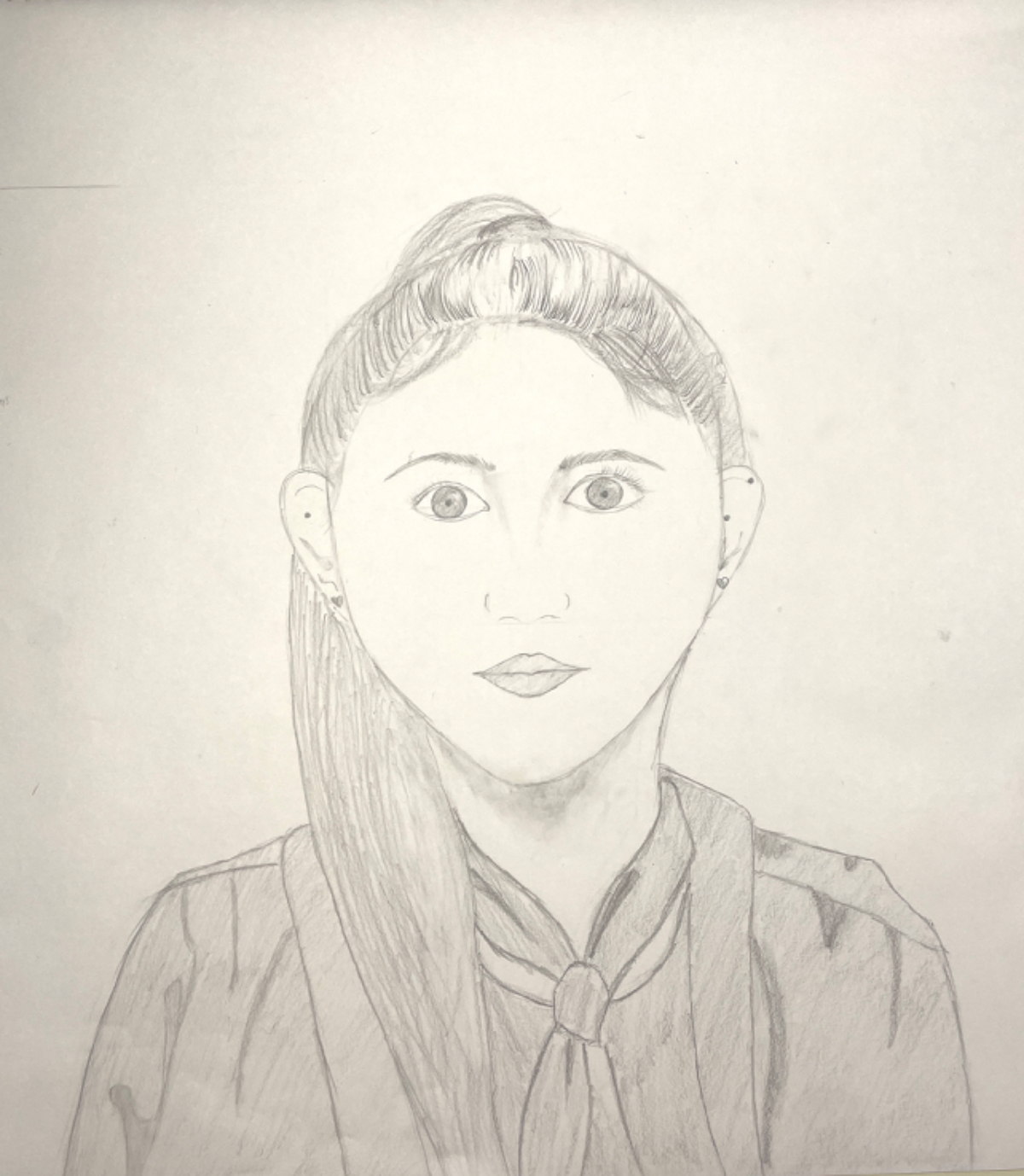 正面から見た顔の書き方を教えてもらった後に書いた自画像です。
