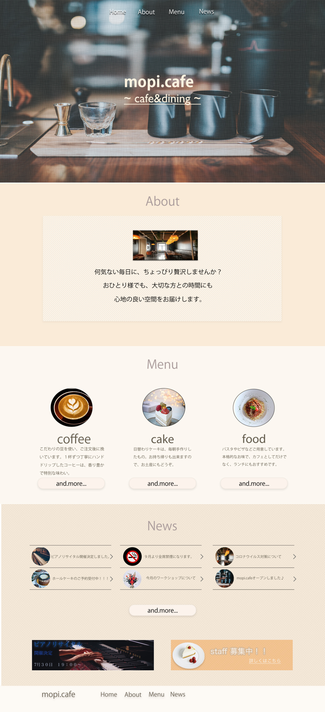 オンラインスクールの課題で、cafeサイトのデザインを作成しました。