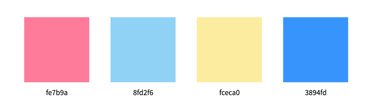 配色を、「ライトな感じのスクール」であることから、軽めの夏らしい3色に設定し、アクセントカラーとして濃い青を採用しました。