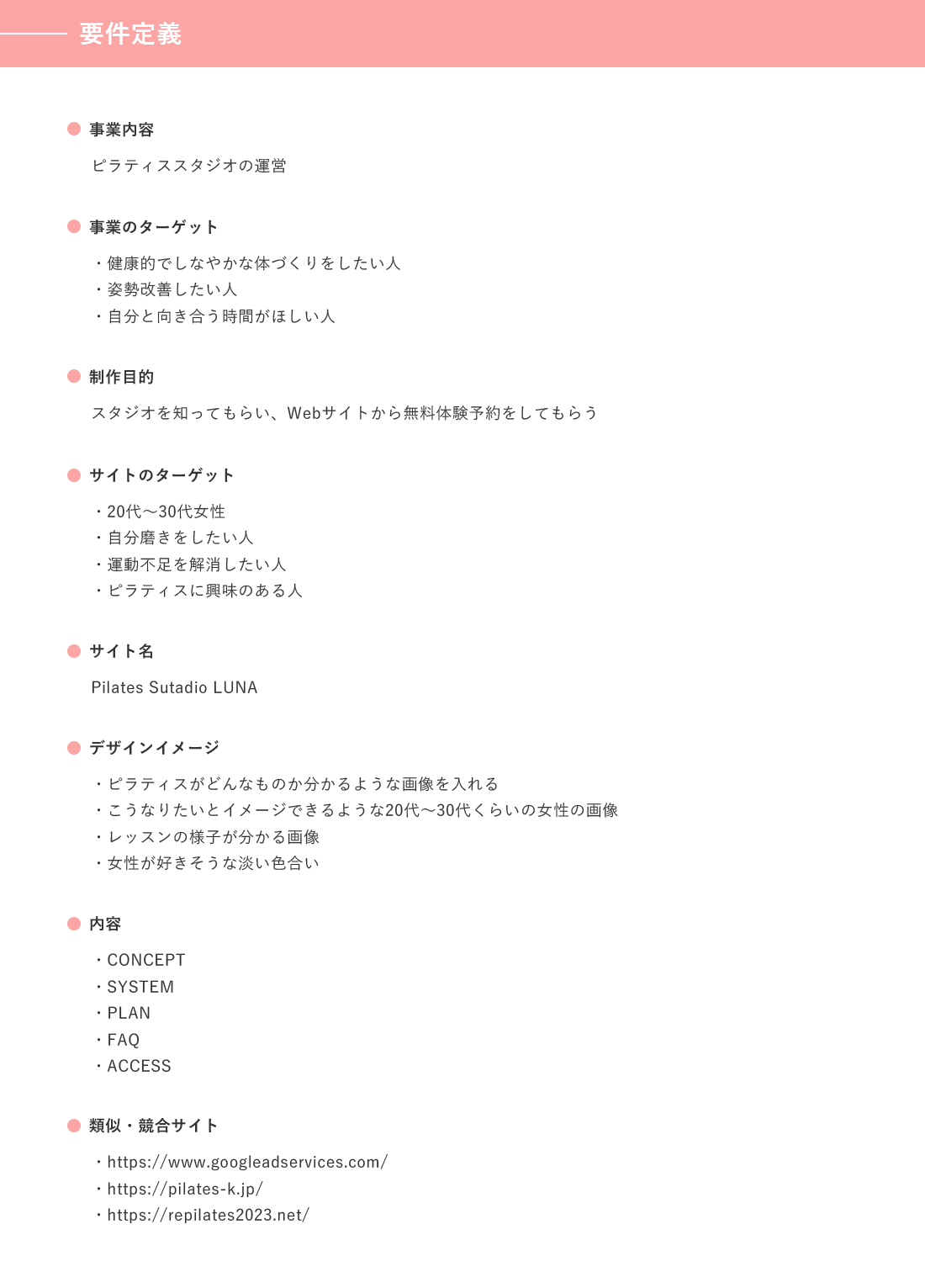 【自主制作】架空ピラティススタジオのWebサイト(要件定義-デザイン-コーディング)
