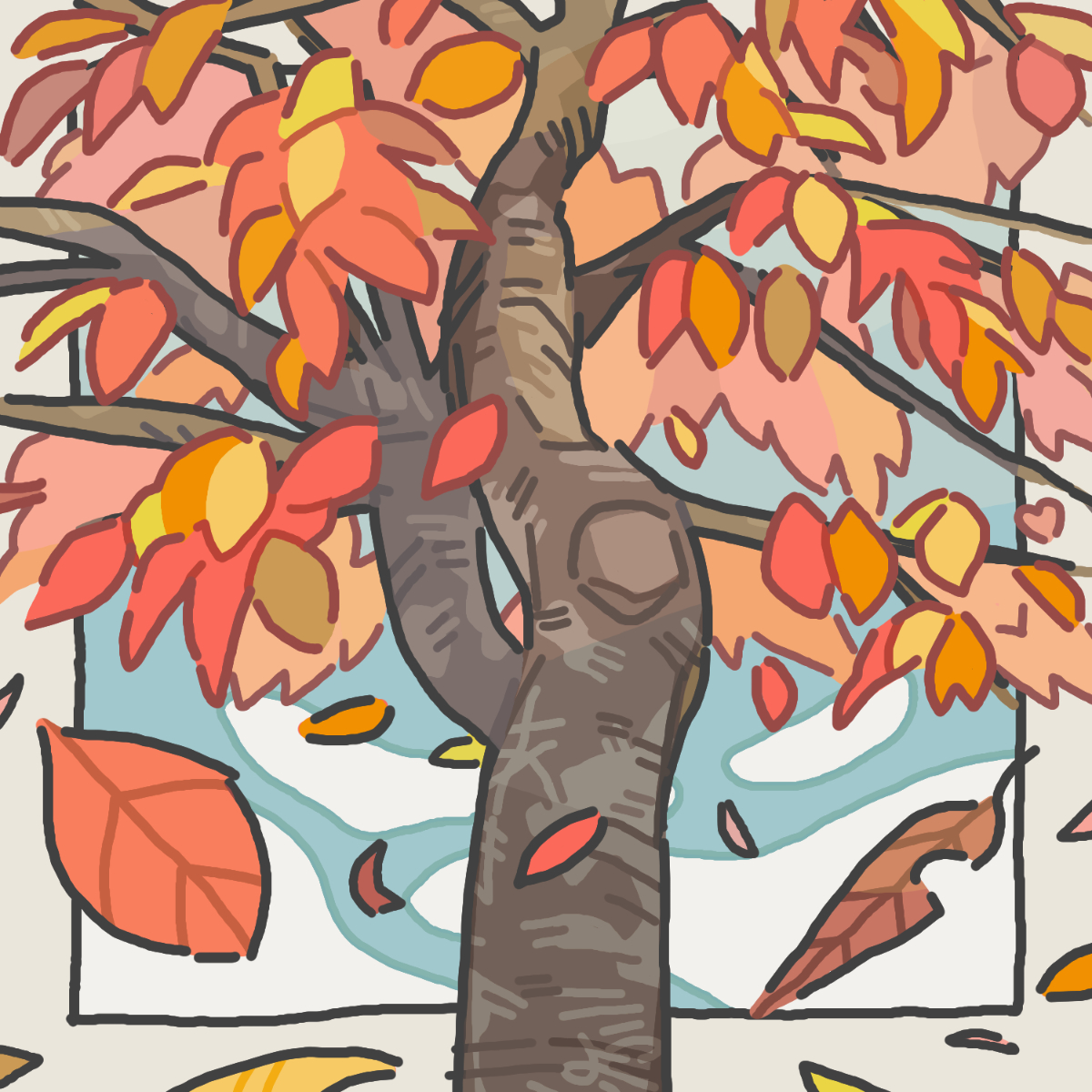 ----------------------------------------------------------------------------------一番好きな季節は秋です。色々と木の写真を撮っていたので、参考にしつつこの絵を描きました。