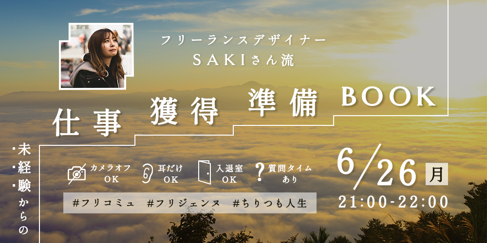 - ご登壇者のSAKIさんの屋号にちなんで、そして未経験(夜中)から昇り活躍する輝く太陽になることをイメージして、背景に雲海に浮かぶ夜明けの太陽の写真を配置しました。