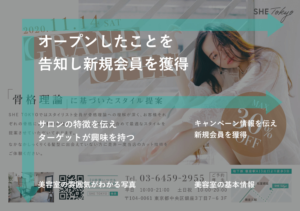 ①グランドオープン▶︎オープンしたことを告知し、新規会員を獲得