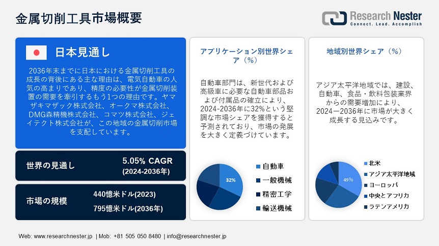 金属切削工具市場規模、成長見通し2024-2036、需要、進化する技術、効率性の向上 Tatsuki Nakamura Market Researcher OVERVIEW 金属切削工具市場調査 北米地域でも、予測期間中に金属切削工具市場が大幅に成長し、機械製造のダイナミックで不可欠な部分により、第2位の地位を維持します。産業革命にまで遡る豊かな歴史を持つ金属切削工具は、飛躍的に成長し、多くの業界で幅広い製品の定番となっています。これらは主に金属片を生産するために製造されており、これらのツールの使用は、航空宇宙、自動車から建設、エネルギー、医療機器製造まで、幅広い業界をカバーしています。 WEBSITE