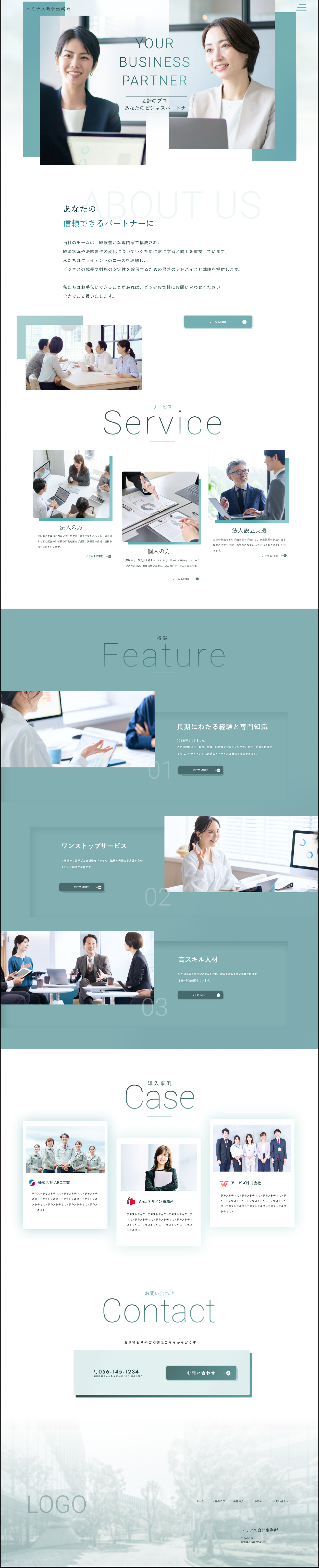 ・緑のテーマカラーに合う白っぽい写真、色味の少ない写真を選定し、統一感を出す