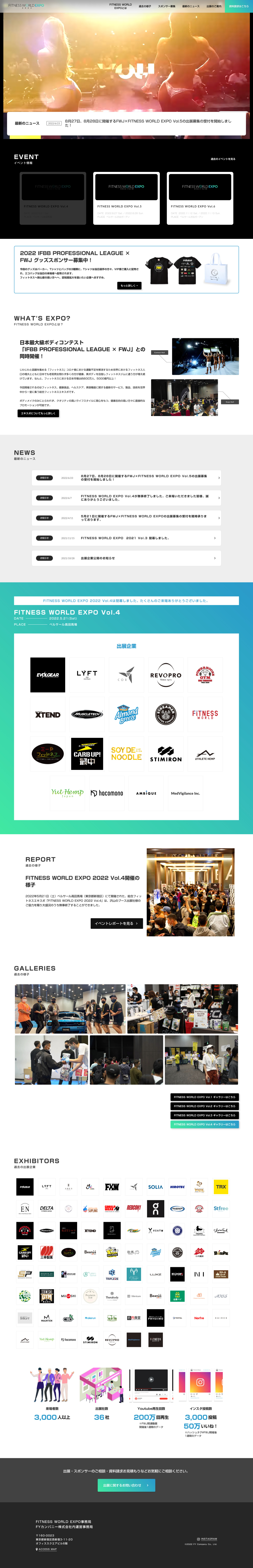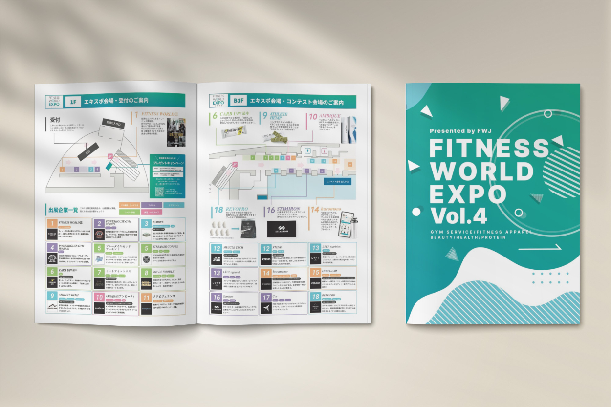 年3回開催されるFITNESS WORLD EXPO のデザイン全般関わっております。日本最大級のボディコンテストと同時開催をしており、主にフィットネスジム・アパレル・美容・健康食品などの出展企業が集まり、年間1万人以上のお客様がご来場されるイベントです。