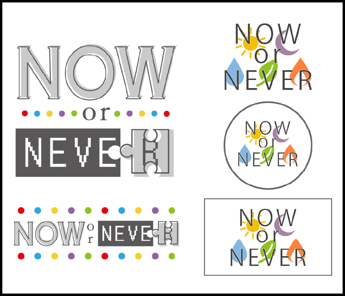 パズルゲームCMソング「NOW or NEVER」の楽曲イメージをもとに制作したタイトルロゴ。